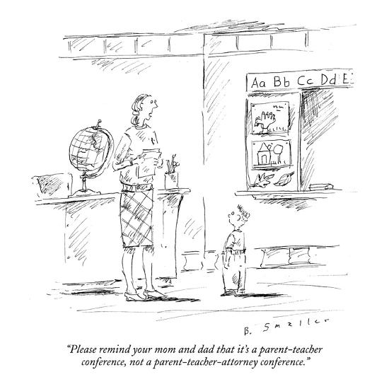 Please Remind Your Mom And Dad That It S A Parent Teacher Conference Not New Yorker Cartoon Premium Giclee Print By Barbara Smaller Art Com