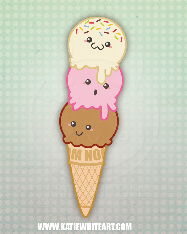 Triple Scoop Neapolitan Ice Cream Art Print By Cindymakes