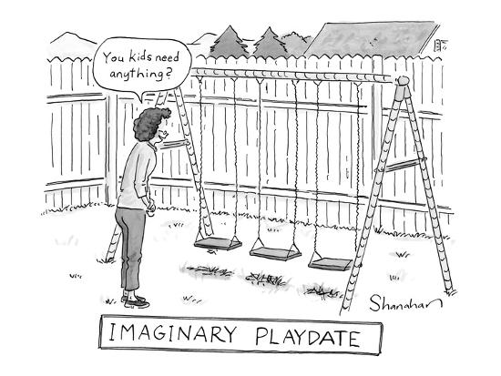 A Woman Says You Kids Need Anything To An Unoccupied Swing Set New Yorker Cartoon Premium Giclee Print By Danny Shanahan Art Com